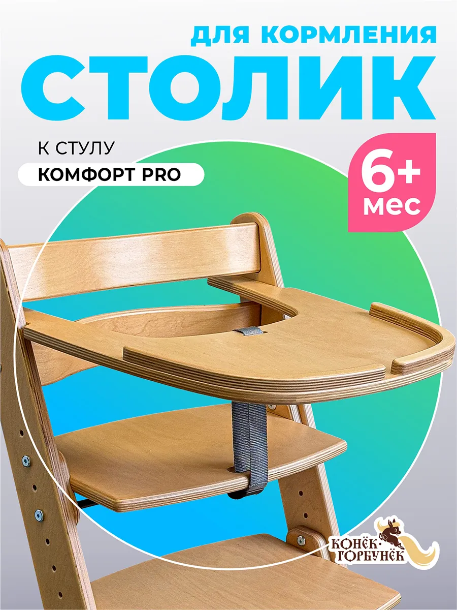 Плоский столик подходит для растущих стульев модели Комфорт PRO и Премиум. Стул в комплекте со столиком превращается в отдельно стоящее место для кормления, где ребенок безопасно сидит и всегда находится в зоне видимости родителей. Используется для детей от 6 месяцев при вводе прикорма и до 3-х лет.